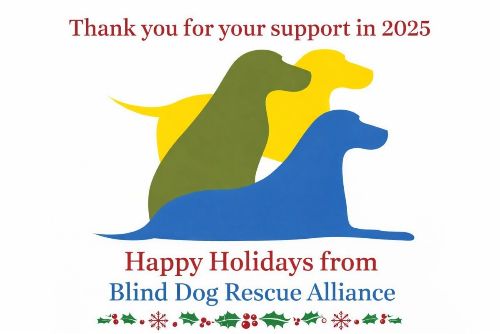 Please help us to continue saving blind and visually impaired dogs! You can donate by clicking the Facebook button at the bottom of this page, or by clicking here: DONATE TO BDRA