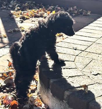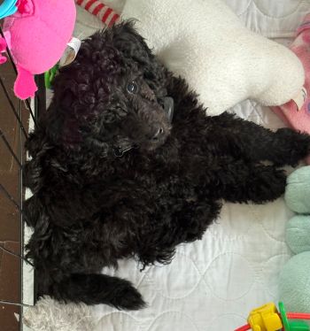 Hello world! My name is HeyU, and I’m a silky black mini poodle born on August 29, 2025. I came into this world blind—but don’t let that fool you. I don’t even know I’m blind, because nothing slows me down! I zoom around the backyard, conquer stairs, and chase toys like a champ. Speaking of toys……did someone say TOYS? They’re my absolute favorite!