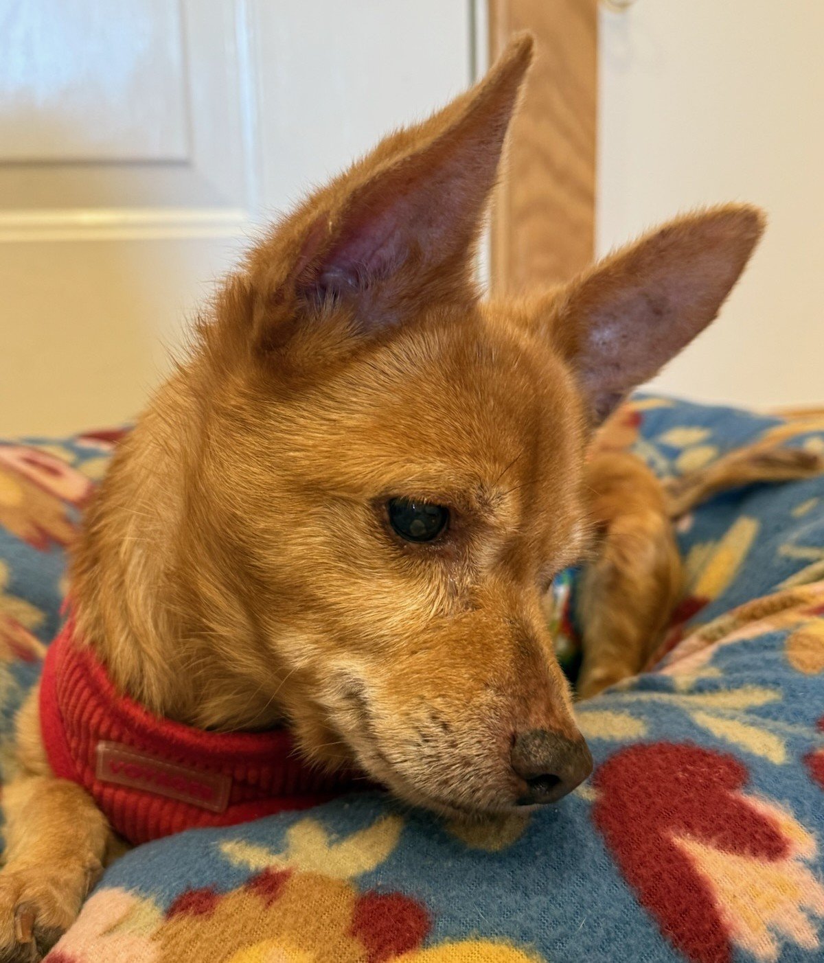 Before Johnny had vestibular syndrome, he was great with housetraining. Once the vestibular symptoms started, he began to have occasional accidents in the house. In the last couple of weeks (as of early November 2025), Johnny has been doing much better and now rarely has an accident! Johnny hopes that someone out there can see beyond the turn of his head (because of the vestibular syndrome) and realize he is such a special, sweet boy, so deserving of a forever home where he will be loved and spoiled!! A couple pictures of Johnny show his current head tilt/turn (as of early November 2025).