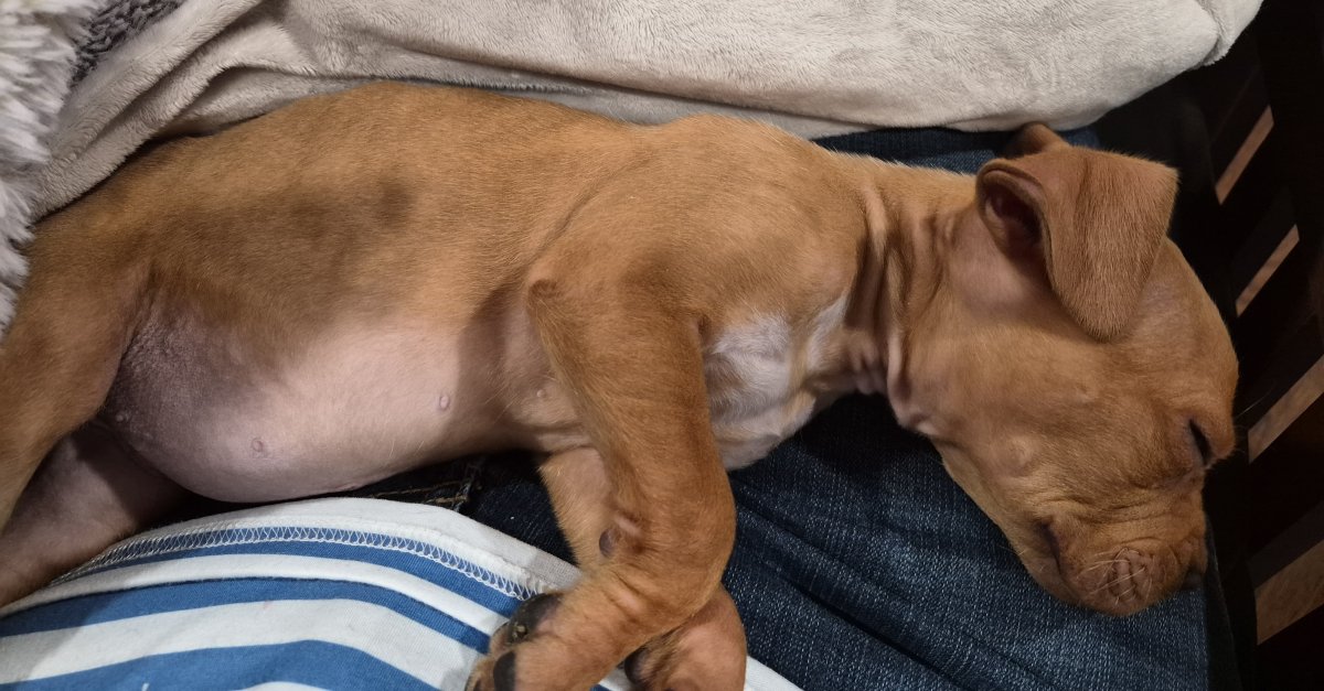 Vet Findings: Positive for puppy worms, giardia and coccidia...all being treated successfully. Broken tail (possibly during birth) but fully healed and some vision loss due to eye ulcers. Otherwise a beautiful healthy girl.