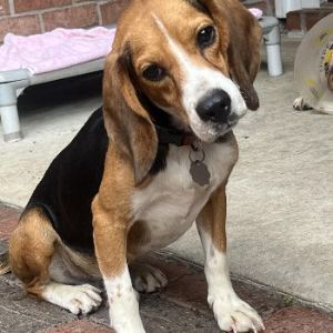 In January of 2024 Ray was in a rural Louisiana shelter. He was in an outdoor pen, as this shelter didn't have any indoor runs. A Good Samaritan took Ray in for a few days to shelter him from the cold weather. She contacted us and asked us to help him. Ray is a very handsome, sweet male beagle.