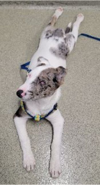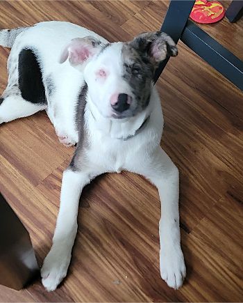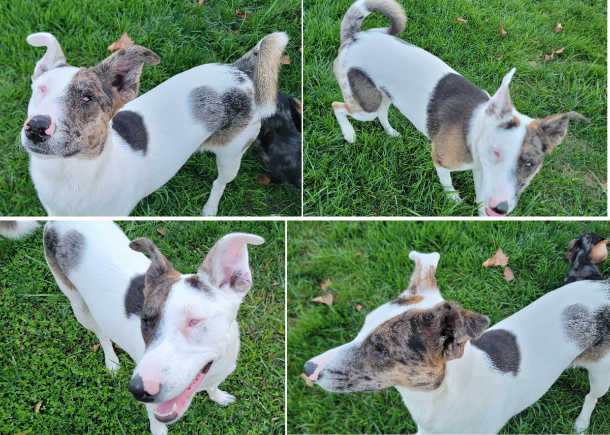 Vet Findings: Healthy other than vision impairment. Glitch is also deaf.