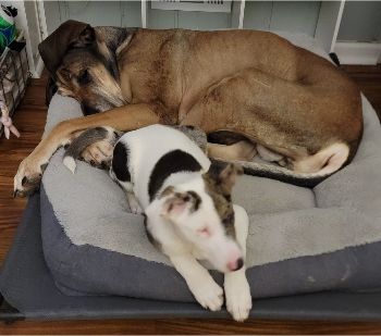 Glitch absolutely loves children and is a very personable girl who also enjoys snuggling next to her people. She is not a high energy dog but would do well with an active family/person or a laid back quiet home as well.
