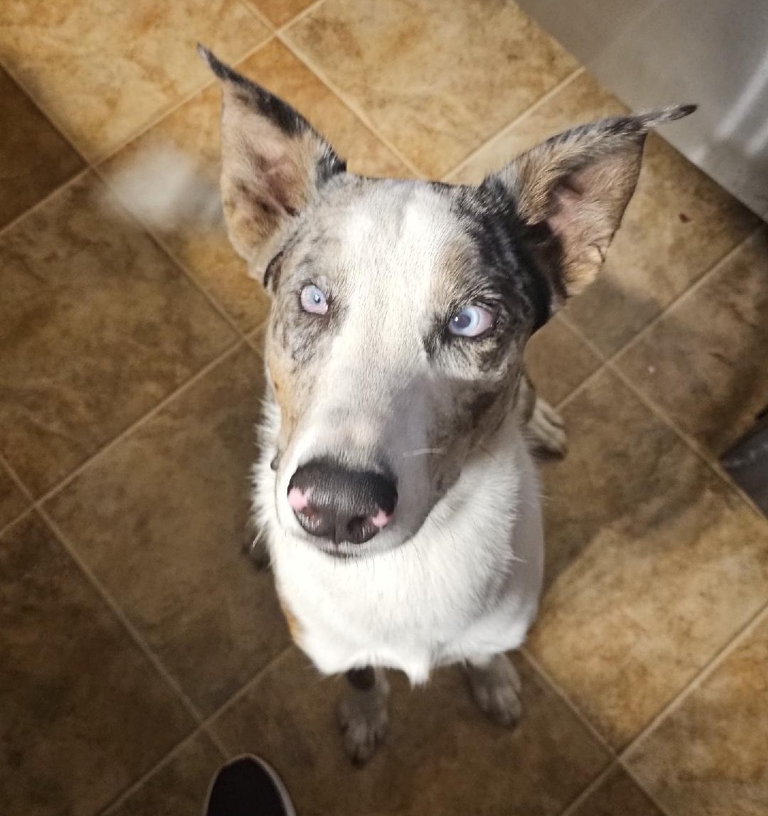 Volt is doing well! He lives for cuddles at night before going to bed in his crate. During the day he has one speed and that is lightning fast. His favorite treat is carrots and he will do anything for them but lay down, lol. He has a pretty good recall and knows sit. He is fully potty trained and goes to the back door when he needs to go out. He plays so gently with his foster mom's mini aussies and rough and tumble with Elektra (corso) and Trigger (lab).