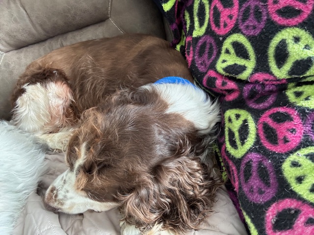 She loves sleeping on the sofa beside her foster mom and would, most likely, do well in bed at night if she finds a family who would welcome that from her. She is a champion sleeper and is also very happy to be in a comfortable dog bed.