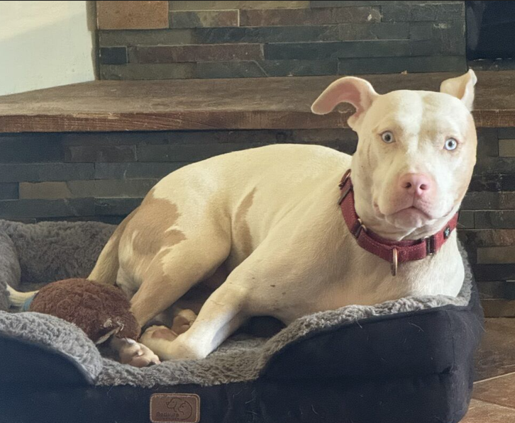 Hope is doing well, is walking good on a leash, loves going to the vet because everyone loves her there and she gets lots of pets. Hope likes to meet new people. She is really great about going to her kennel when asked. Easily goes into her kennel when her foster mom leaves. Hope loves to snuggle at night and likes to put her head in my lap when I’m reading. She likes to cuddle and sleeps right by her foster mother. She has a lot of energy, likes to play with toys, and run outside with her foster siblings of all sizes and breeds. Her favorite games are chase and tug a war.