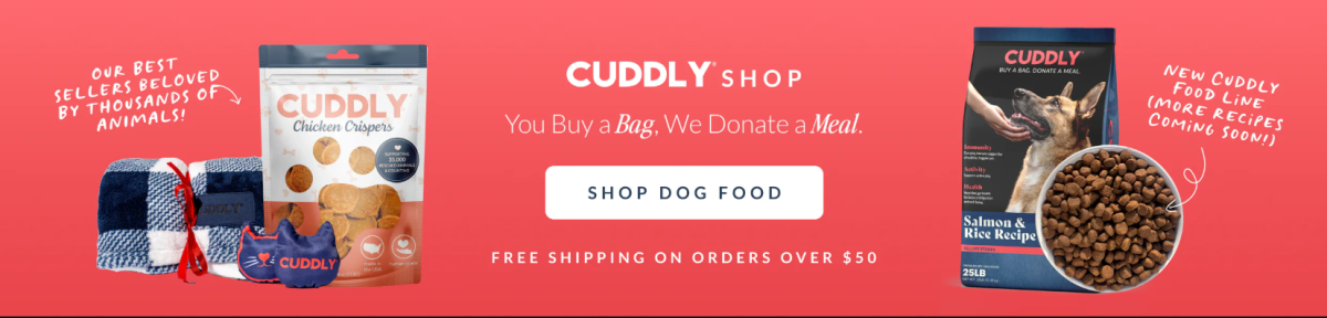 CUDDLY's mission is to give every animal a second chance. We have raised over $100 million to support more than 4,000 shelters and rescues. Now, for every item purchased from our shop, we will donate a meal to an animal in need. BDRA dogs on CUDDLY