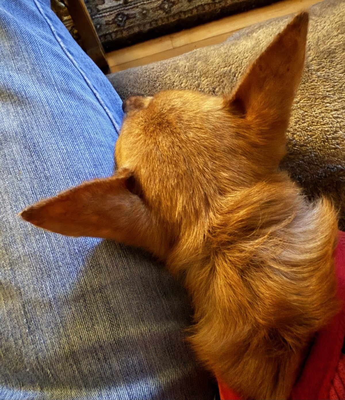 If you are still interested in this special little guy (we hope you are!), here are more details about Johnny, including his health history. Johnny quickly learned the daily routine in his foster home. He is waiting at our feet when breakfast and dinner are being prepared. He is also standing in the kitchen for mid-day snack. He knows every evening it is “sofatime” – a time when he is on the sofa with the other three dogs in the house and his foster mom too. He curls up and takes a nap, although does enjoy a head rub. And, at the end of the day, he goes right to sleep in his bed in his crate, and never makes a sound, sleeping all night and keeping his crate dry. He needs to be carried up and down steps. Johnny likes to sniff around outside but generally does his business and is ready to go back in. He is from Texas so is a little uncertain about wet and cool weather but he is getting acclimated!