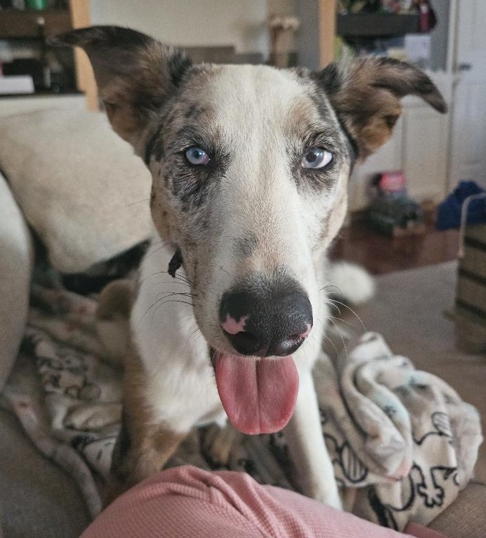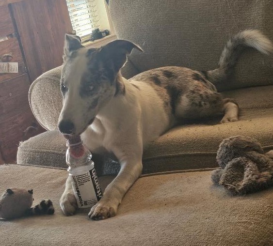 Volt is doing well! He lives for cuddles at night before going to bed in his crate. During the day he has one speed and that is lightning fast. His favorite treat is carrots and he will do anything for them but lay down, lol. He has a pretty good recall and knows sit. He is fully potty trained and goes to the back door when he needs to go out. He plays so gently with his foster mom's mini aussies and rough and tumble with Elektra (corso) and Trigger (lab).
